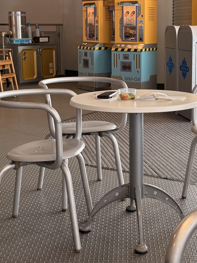 日本では社会的信頼がとても高くて、食べ物を取りに行ったりトイレに行ったりする間、席を確保するために携帯電話を置いておく人がよくいる(写真は東京ディズニーランドで撮影されたもの)。