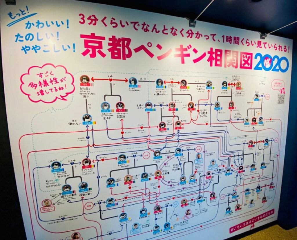 日本にある京都水族館では、ペンギンたちの恋愛関係や破局、そしてドラマを追跡するために、壁一面のフローチャートを設置している。赤いハート=カップル、青=破局、紫=複雑な関係、黄色=友達、緑=敵を表している。