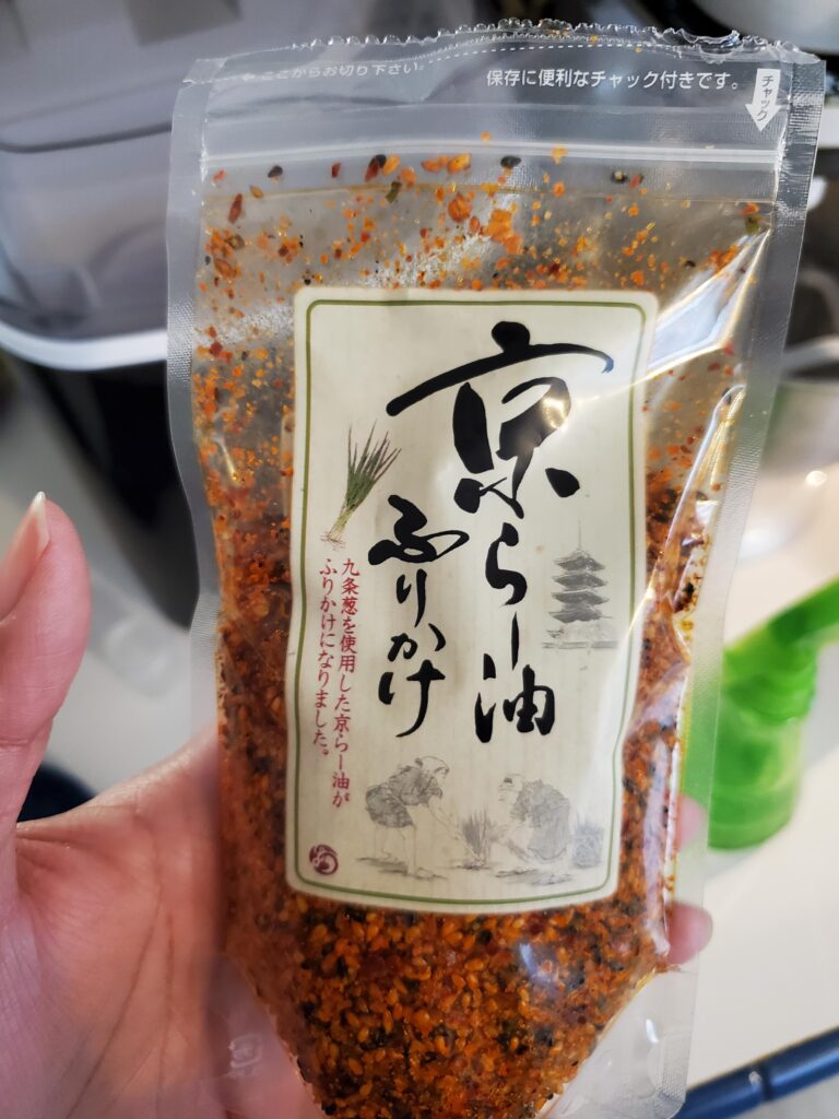 京らー油ふりかけ(ラー油入りのご飯用ふりかけ)。