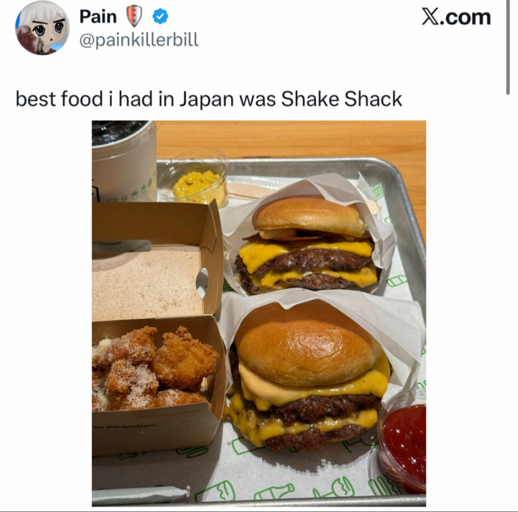 日本で食べた最高の食べ物はシェイクシャックだった。