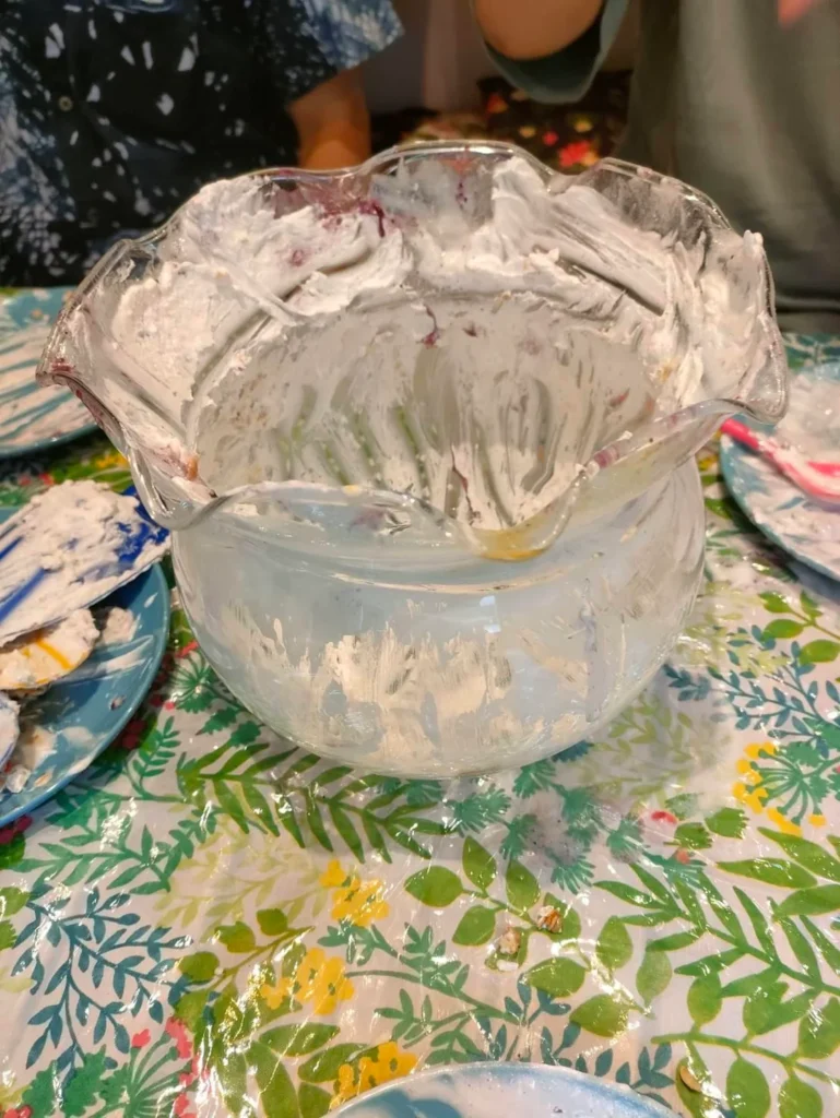 これは「デザート」というより、”食べられる心理戦”みたいな代物だった。金魚鉢みたいな巨大なボウルに入っていて、人の頭よりも大きい。その中にアイス、チョコ、大福、シリアル、バナナがぎっしり詰め込まれている。見ているだけで砂糖に襲われている気分になる。
