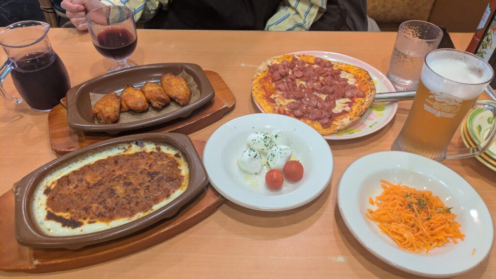 これで3000円なら、サイゼリヤにもインフレの影響が出てるね。昔は1500〜2000円くらいでこれくらい食べられた。